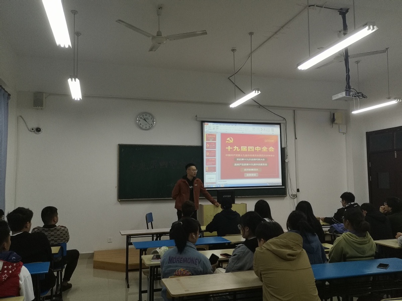 为深入贯彻党的十九届四中全会精神,积极响应党的号召,加强广大学生的政治修养,帮助广大青年正确认识国情。11月19日学院各个班级利用晚自习时间组织班级进行了不同形式的关于“学习十九届四中全会精神”学习的主题班会。