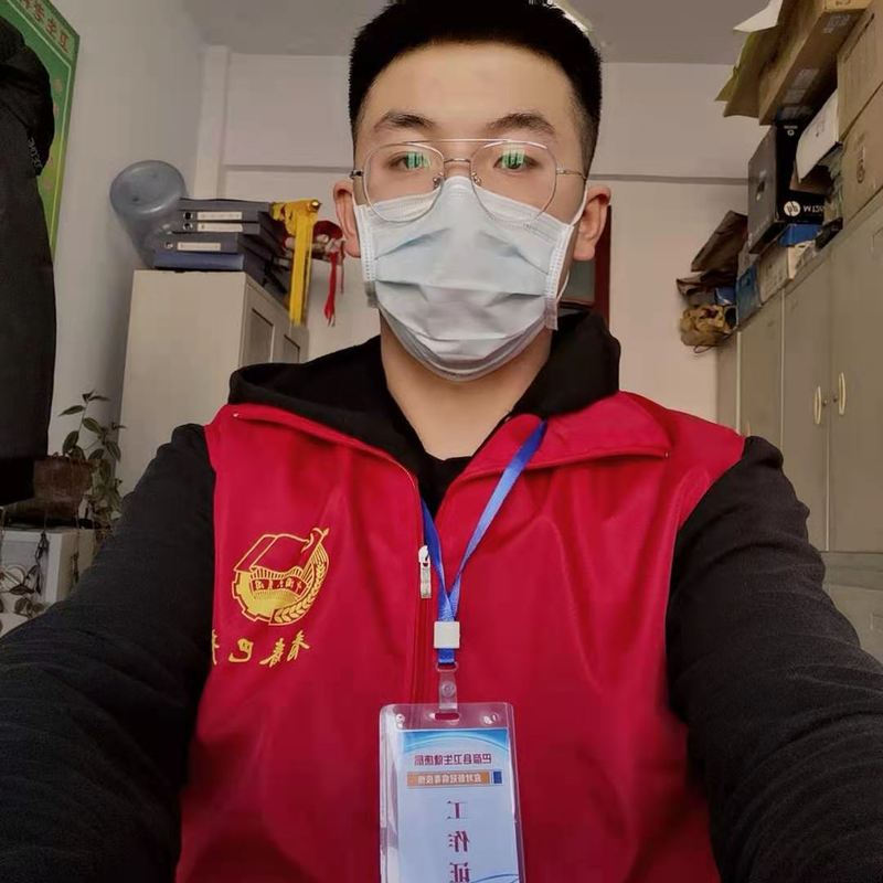 19计算机应用技术(人工智能)班的张轩鸣在班级担任班级团支书、学院组织部部长,作为一名入党积极分子,作为一名大学生,积极报名参加疫情防控志愿服务,为家乡巴彦出一份力。
