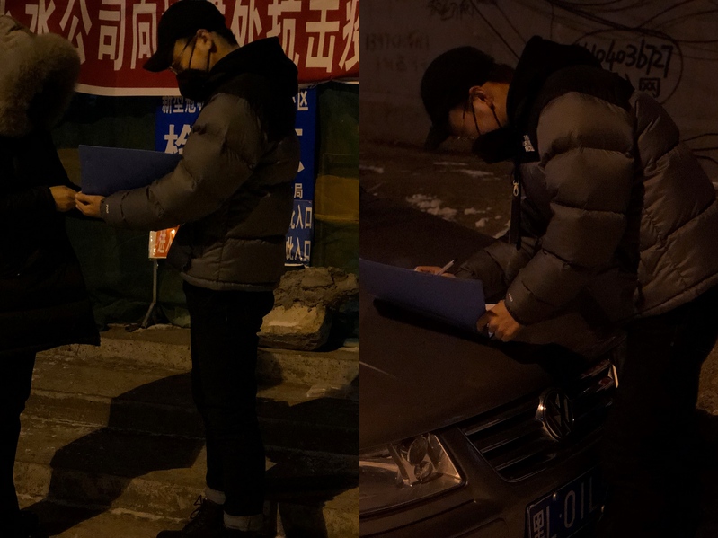 除此之外,配合当地各个检查点,对于来往的人员进行出门证检查,测量体温登记工作。