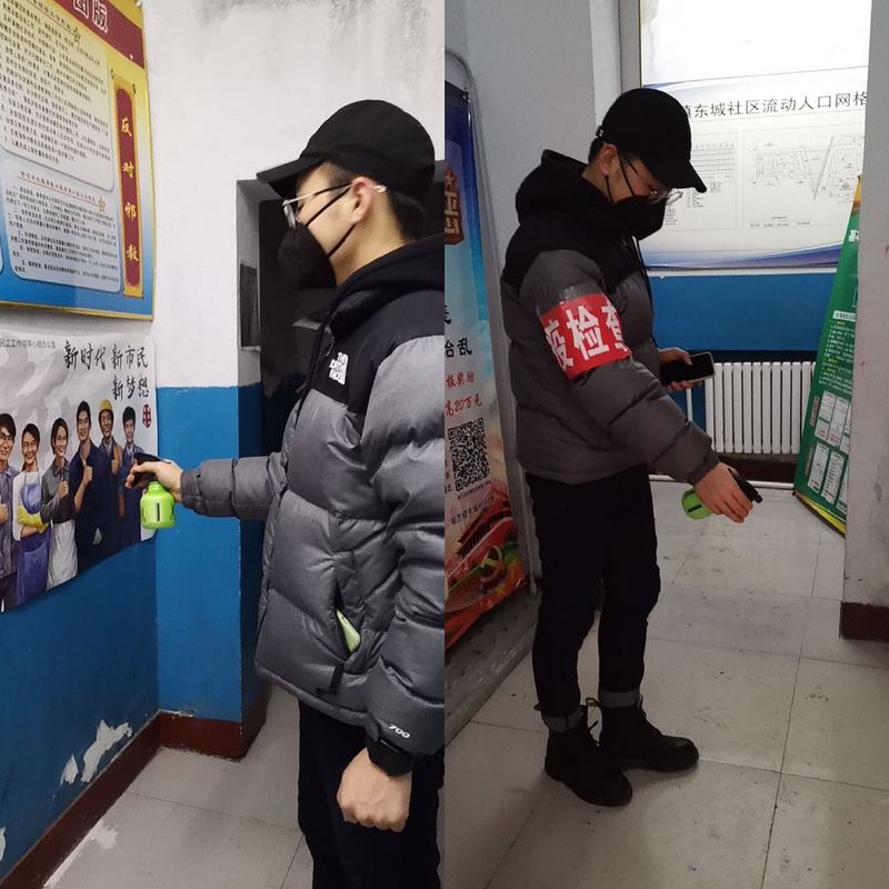 在工作中,首先他配合社区对于单位小区等重点区域进行消杀工作,并为社区居民发放消毒医用酒精,确保有效形成居民小区疫情防控的工作闭环,为群众的身体健康筑起一道安全防线。