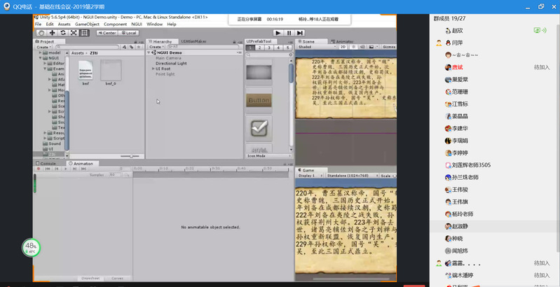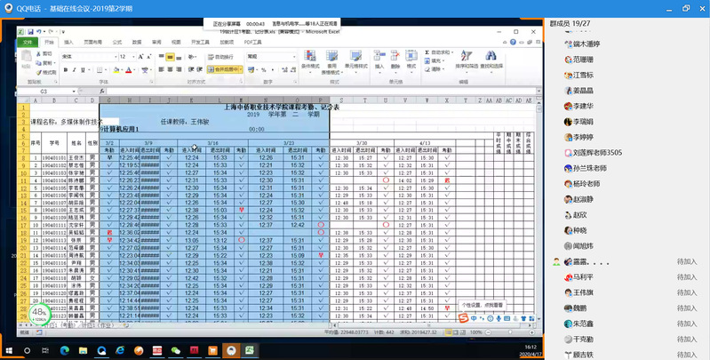 随后,受教研室的邀请,赵欣老师给大家介绍了自己在线上教学过程中的一些心得体会,具体介绍了利用教学平台+直播+交流群相结合,创新教学模式,在课程思政、互动、时时评价、屏幕共享等方面所做探索进行了分享。比如为了让学生看到的教学资料更清晰,亲自拍图扫描并标注重点关键信息;电子考勤表上,细致记录了每位学生的出勤情况,作业知识点的完成情况;在自己课程的QQ群里,上课时段全程互动讲解陪伴,与学生不分时段的答疑;对学生的优秀作品进行展示、对能解答同学问题的学生给予鼓励加分,形成互帮互助共同提高的良好氛围;对作业的收集及刻录等等……,老师们纷纷感叹教学之用心、工作之细致充分!