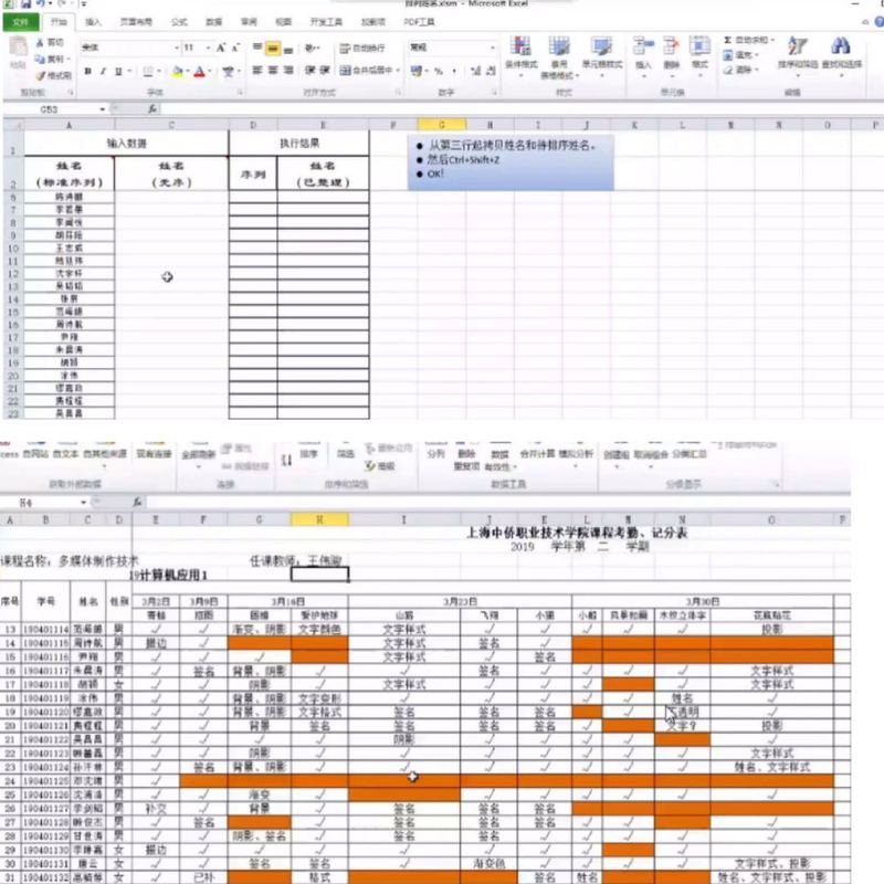 其次,邀请教学团队中的“技术专家”王伟骏老师就腾讯课堂中如何在繁杂的数据中快速整理考勤统计表进行了讲解和介绍,为了给老师们在线上教学过程中“减负”,王老师设计了一款考勤名单整理的小程序,此程序经过数次改版与更新,为老师们对学生考勤名单的整理提供了方便!同时王老师给大家展示分享了他的课堂中的考勤情况,在他的考勤记录里,能清晰地看到学生进入离开课堂的时间段,每位学生的作业有无、作业问题的标注。一张考勤表记录的是学生的学习情况,反映的是老师们背后默默辛苦的付出!
