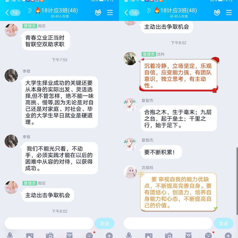 17计网2班邵武成:让我当下就业形势的严峻以及可以抓住的新机遇,对于我们更好地开展毕业生就业指导帮助良多,让我更加清晰知道网上求职的注意事项。