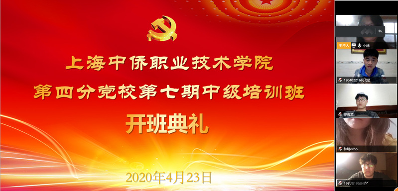 20204231830,上海中侨职业技术学院(本科)第四分党校第七期中党开班仪式利用“云上”见面的方式与各位学员聚在一起。信息与机电学院党总支书记刘群,相关辅导员老师及全体培训学员参加了仪式。