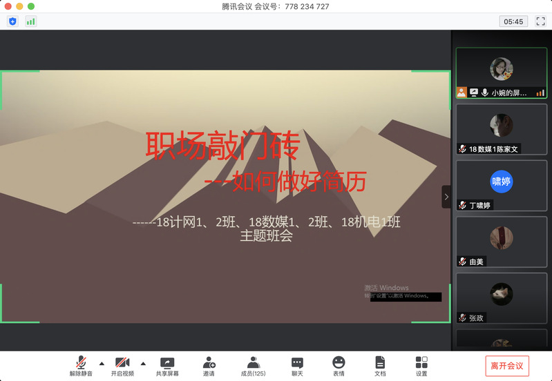 在大学生就业形势日剧严峻的背景下,为了培养学生树立职业生涯规划意识,增强对自我的认识,学会简历的撰写,近期,信息与机电学院18级各班级在辅导员的组织和安排下借助“威佰通”、“腾讯会议”等平台线上开展了“职业生涯规划暨简历撰写技巧”主题班会。即将踏入工作岗位实习的大二同学们此刻可能是在徘徊的阶段,不知道自己该要去往何方,不知道要从事什么岗位,不知道简历如何撰写,召开这样一次主题班会,可以让同学们对自己有更加清晰的认识,正视自身存在的不足。