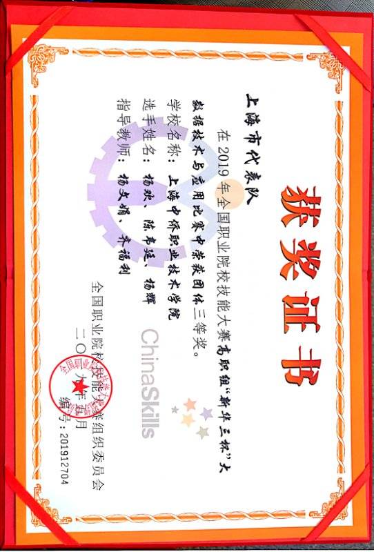时间切换到2019年的那个夏天,他参加了全国职业院校技能大赛高职组“新华三”杯大数据技术与应用的比赛,这与他之前参加的比赛不同,这是一次团队比赛。他将与其他两位同学一起面对更为严峻的考验。他们迅速磨合,互相分配工作,补足各自的短板,每天都在一起备赛,一起学习。在长达两个月的刻苦备赛中,他们既收获了知识,也收获了友谊。最终,努力终有回报,他们在“红亚杯”2019年全国职业院校技能大赛(高职组)上海赛区大数据技术与应用项目选拔赛中荣获冠军,之后又在贵州举办的全国职业院校技能大赛高职组“新华三”杯大数据技术与应用赛事中荣获三等奖。切实的经历令他体会到团队协作的重要性,也令他意识到自身还有所欠缺的地方,从而再接再厉,再度成长。