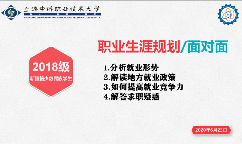 为了进一步帮助少数民族学生了解新疆地区最新就业政策,转变就业观念、制定清晰的职业发展规划。6月23日上午10:00,信息与机电学院邀请了学生处副处长陈佳政老师给18级20余名新疆籍少数民族同学开展了主题为“审视自我,确立目标,成就人生”的新疆少数民族职业生涯规划讲座,学院党总支书记刘群老师,少数民族辅导员孜拉.吉古丽参加此次活动。