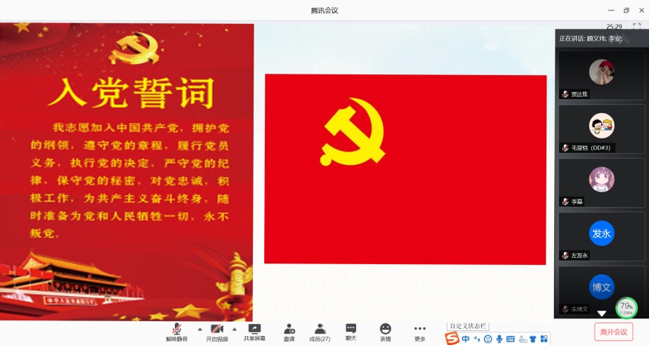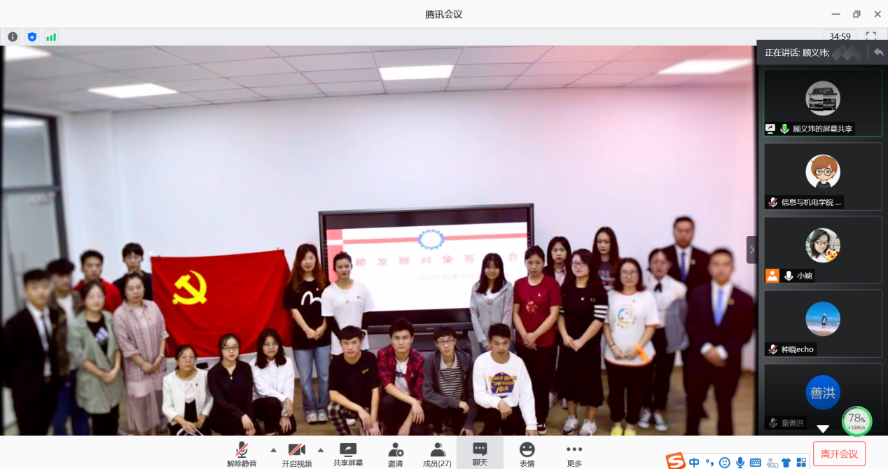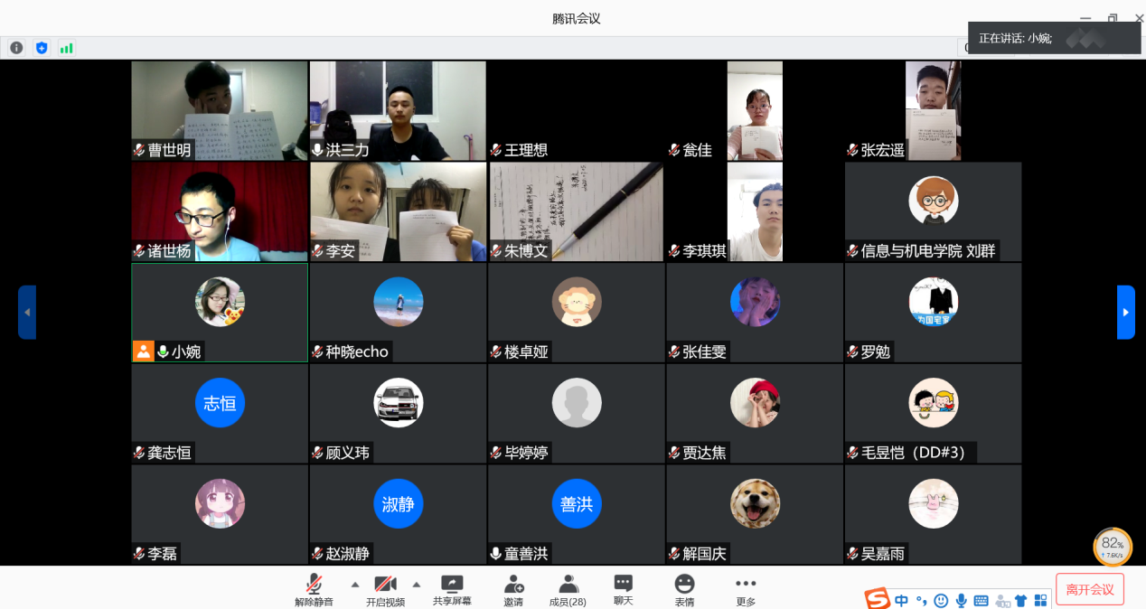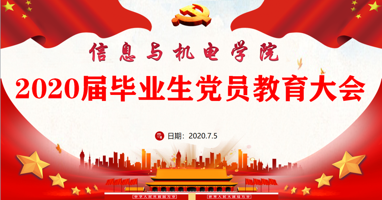 7月5日18:30,为进一步教育引导2020届毕业生党员坚持以习近平新时代中国特色社会主义思想为指导,遵守党章规定,学好“四史”,不忘初心、牢记使命,信息与机电学院利用腾讯会议在线组织召开了“初心不改,筑梦前行”毕业生党员离校教育活动,会议由党支部书记胡婉君老师主持。