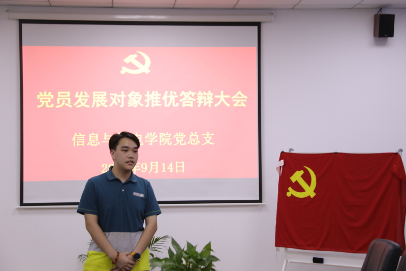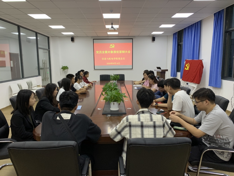 为了扩充党支部队伍,吸纳信仰坚定、表现突出、甘于奉献、勇于担当的优秀学生加入党组织,切实保证发展党员质量,促进基层组织建设制度化和规范化。9月14日晚上,我院信息与机电学院第二党支部在9-306会议室举行党员发展对象推优答辩大会,本次大会由支部书记胡婉君老师主持。