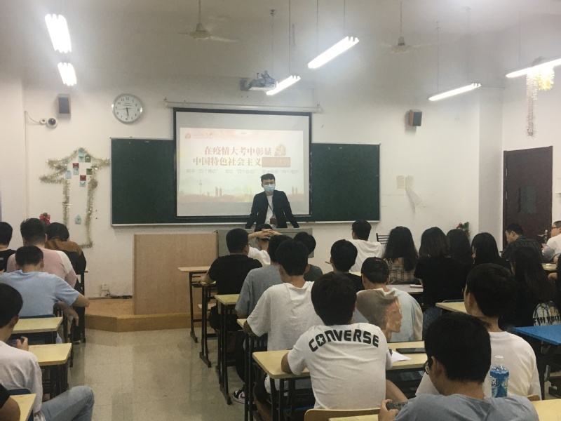 辅导员于奇瓒老师的主持下开展了以“疫情大考中彰显中国特色社会主义制度优势”为主题的励志班会课。在班会中于老师以中国抗击疫情的实践探索为背景,深入引导了学生向在抗击疫情过程中涌现的“最美逆行者”学习。并向大家详细讲解了中国特色社会主义制度在疫情大考中发挥的制度优势。激发了学生爱党、爱国的热情。