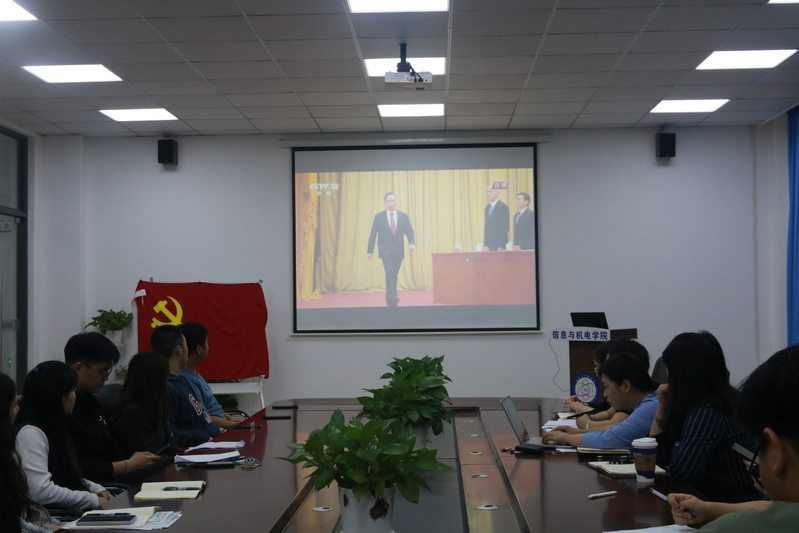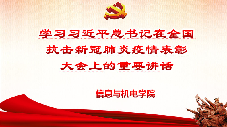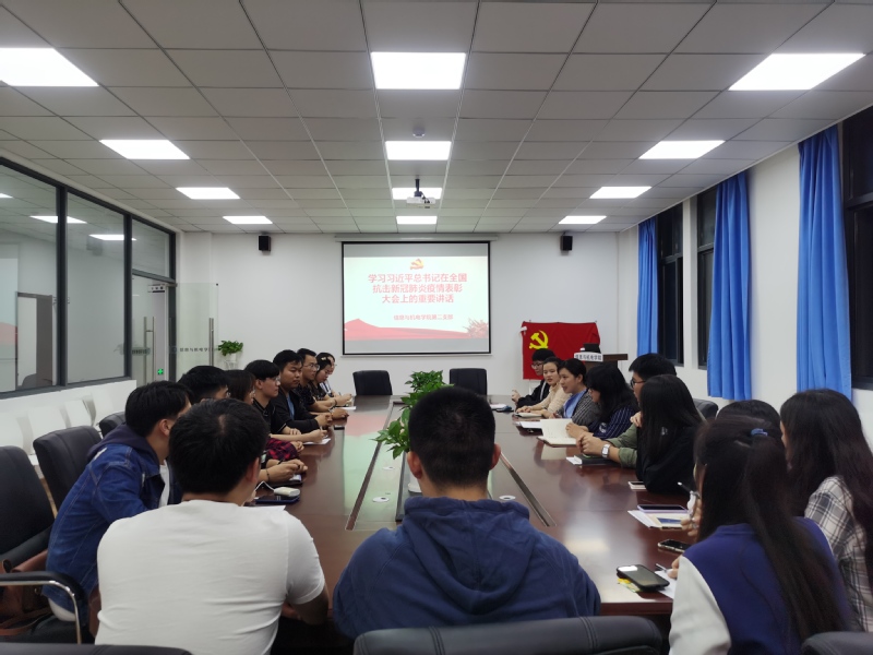 2020年9月27日16:00,信息与机电学院召集师生党员代表、预备党员和拟发展对象和团学骨干在9号楼306召开专题会,深入学习习近平总书记在全国抗击新冠肺炎疫情表彰大会上的重要讲话精神,党总支书记刘群老师主持会议。要深入学习贯彻习近平总书记重要讲话精神,增强“四个意识”,坚定“四个自信”,做到“两个维护”,大力弘扬伟大抗疫精神。