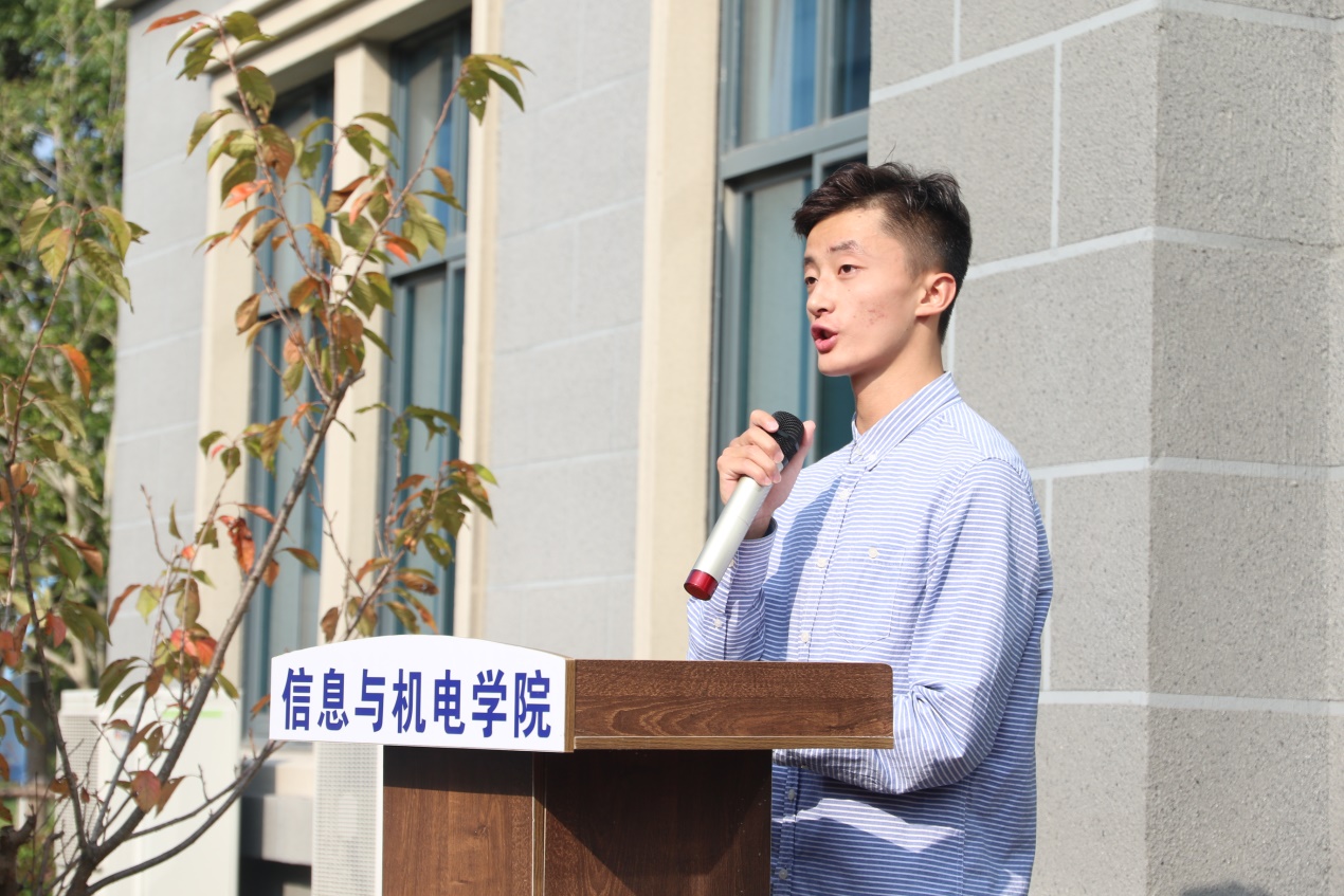 为了让2020级新生更加深入的感知大学生活和学习的特点,帮助学生认识自我、树立信心、了解自我发展和成才的方向。10月13日早上8:30,信息与机电学院在9号楼前举行了2020级新生入学典礼,此次典礼由信息与学院党总支书记刘群老师主持,参会的有学院院长黄立新,陈祖爵,副院长赵欣,各专业主任代表,新生辅导员,部分老生代表以及全体2020级800余位新生。