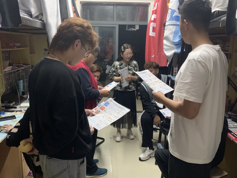 来到寝室,检查宿舍卫生、违章电器、指导垃圾分类、派发垃圾分类宣传单。通过现场指导,部分同学宿舍内部已经认真执行垃圾分类,宿舍垃圾按照干垃圾、湿垃圾、可回收物、有害垃圾分类投放,号召同学们积极践行垃圾分类。