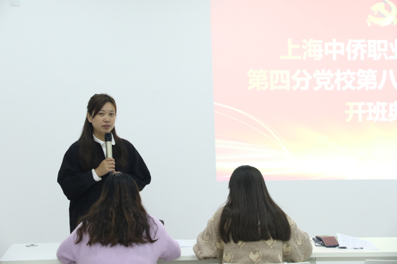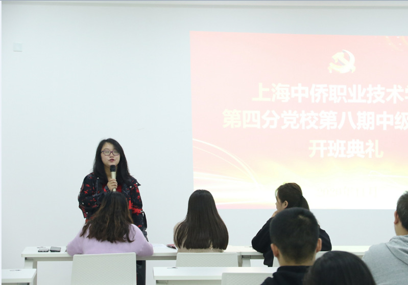 2020年11月5日18:30,上海中侨职业技术大学第四分党校第八期中党开班仪式在9号楼501教室准时召开。信息与机电学院党总支书记刘群,第二党支部书记胡婉君、相关辅导员老师及40余名中党培训学员参加了仪式。