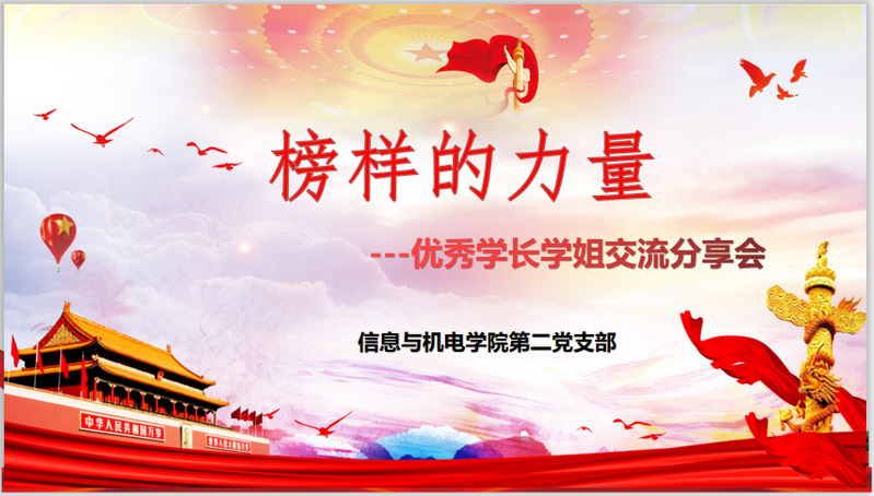 从中学到大学,生活时空的变化让许多的新生会有许多的疑问和迷茫。入学前的唯一希望就是跨入大学的校门,而一旦目标实现,又没有树立起新的切合实际的目标,也就失去了内在动力和目标。看到这种现象,为了让新生能够早日知道自己的学习目标,树立自己学习的榜样,信息与机电学院第二党支部早早的引导学生提交入党申请书,并在11月19号,在9#501开展了“榜样的力量---优秀学长学姐分享交流会”初党实践课程。150余名入党积极分子参加。
