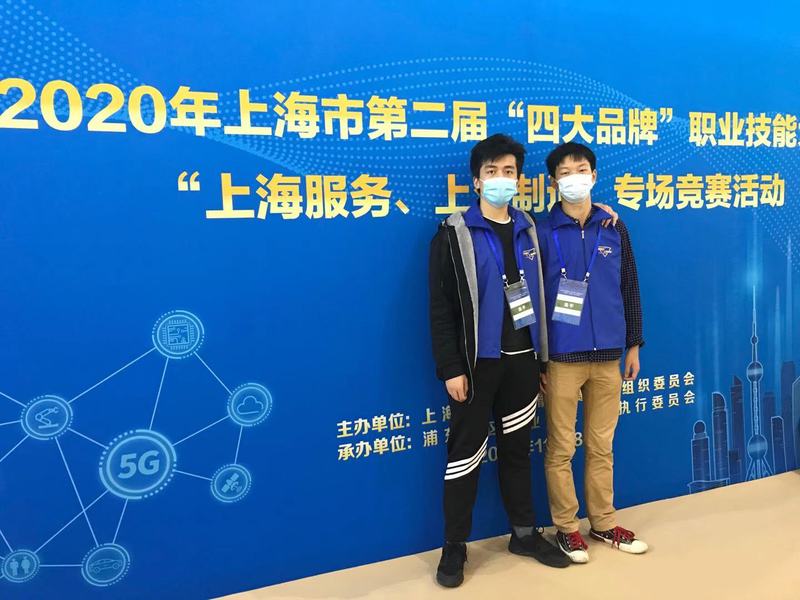 11月18日,2020年上海市第二届“四大品牌”职业技能竞赛“上海服务”和“上海制造”在浦东世博展览馆拉开序幕。比赛由初赛的24支队伍中选出7支队伍参加了本次决赛。最终,经过理论和实操两部分的比拼,在颜文英老师的指导下,18计网1班王伟梁和19计应3班丁仁杰组成的参赛队获得“车联网通信系统组网调试”团体三等奖。