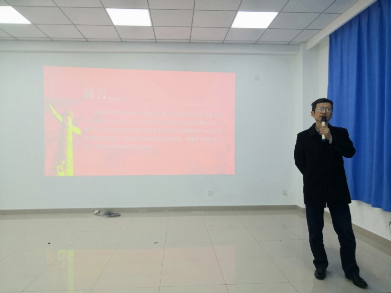 2020年12月3日下午15:45,罗宁副校长为第四分党校中党的全体同学们在9号楼510室上了一堂主题为《学习贯彻党的十九届五中全会精神》党课,罗校长紧紧围绕主题,强调增强“四个意识”、坚定“四个自信”、做到“两个维护”,把思想和行动统一到习近平总书记重要讲话和全会精神上来,把智慧和力量凝聚到实现党的十九届五中全会提出的各项目标任务上来。通过这次学习,争当中华民族伟大复兴新征程上的奋进者。