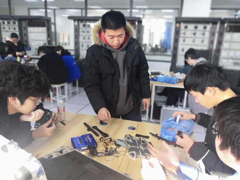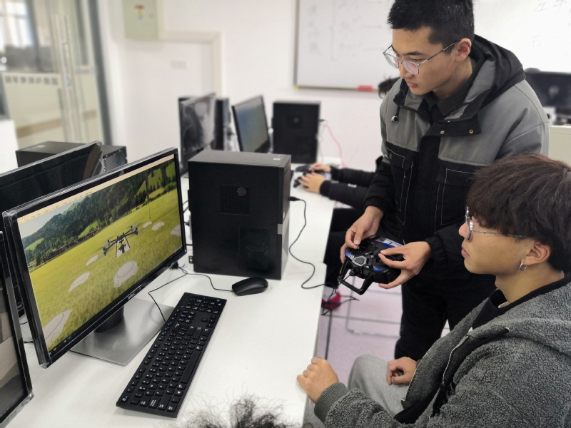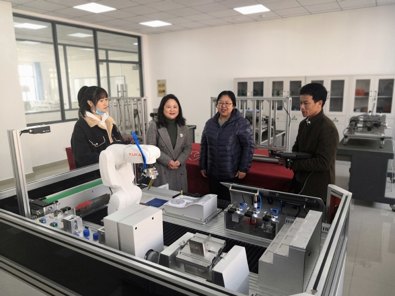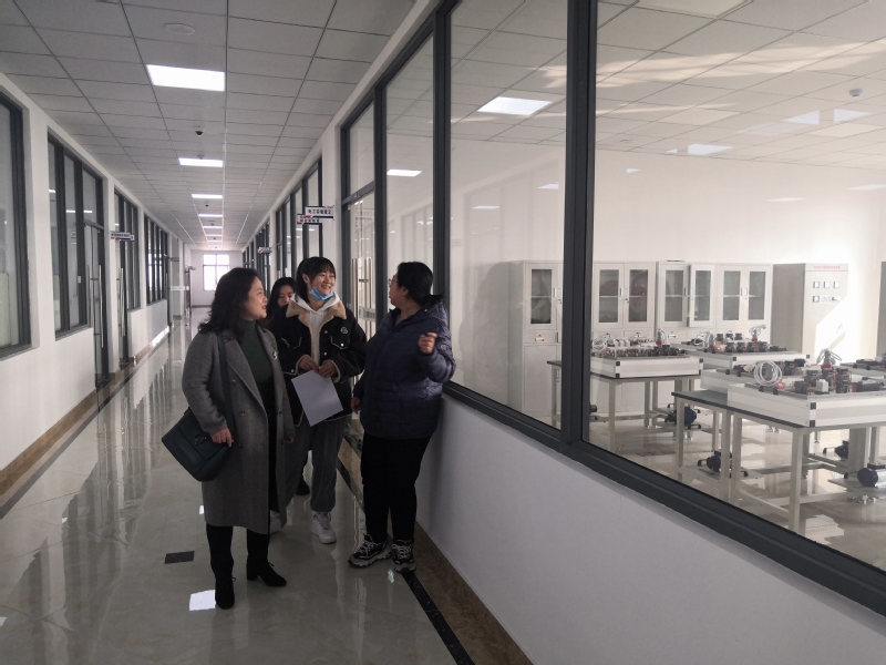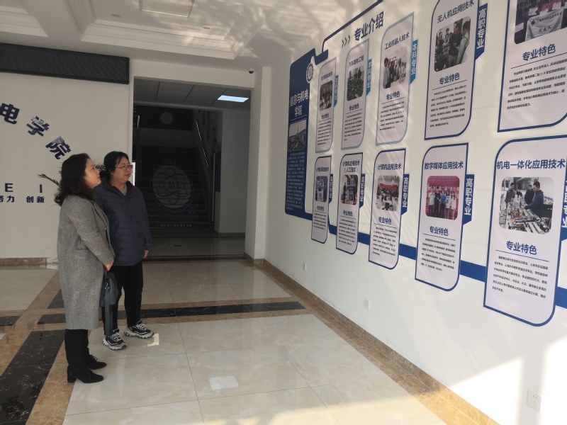 赵欣院长先向李云科长介绍了无人机培训班开班以来学生学习的状况及进程,接着先后参观考察了学生上课的情况、无人机飞行仿真室、无人机展示厅及9号楼相关专业实训室。