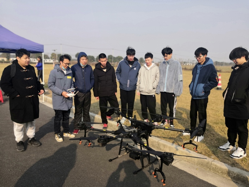 无人机青年(大学生)训练营开班不知不觉已过半,学员们的理论知识已充分掌握,2020年12月24日是无人机安防及电力巡检班学员赴华东无人机基地实战训练的第一天,信息与机电学院副院长赵欣、党总支书记刘群及班主任赵淑静下午一同前往基地看望慰问学员们。