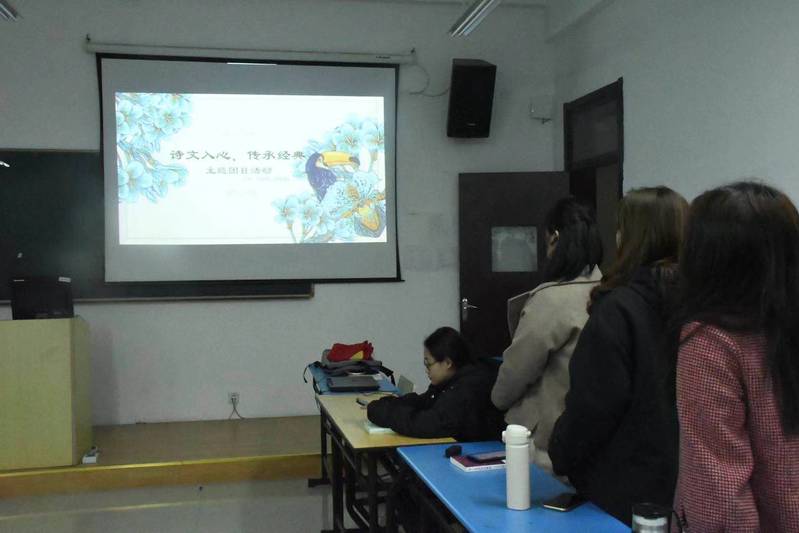 中国古典诗词博大精深,很多传世佳作源远流长,是文化艺苑中经久不衰的瑰宝。为了提高大家对于本民族传统文化的关注和兴趣,使中华传统文化能够更好的传承和发展,20数媒1、2班于2020年12月28日利用晚自习时间,在4-505教室开展了“诗文入心·传承经典”主题团日活动。