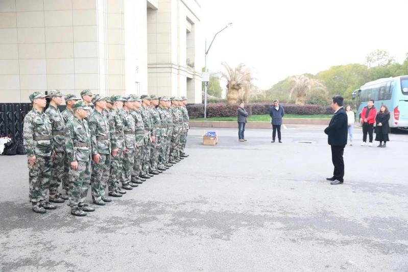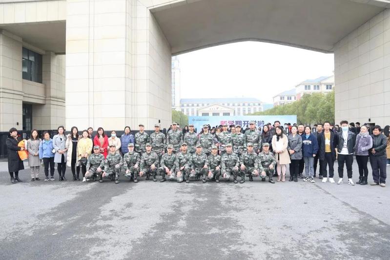 2021年3月12日早晨8点,我校在南大门前组织2021年学生春季入伍欢送会。校长陈晓斌、校党委书记平杰、学生处处长朱范鑫、学院副院长赵欣、学院党总支书记刘群出席本次活动,各班级辅导员以及中侨大学的同学们参加。大家一起为入伍的新兵同学送行。