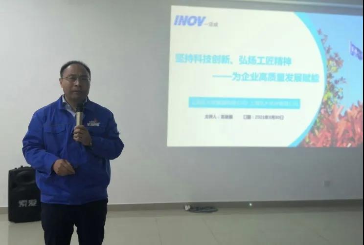 讲座中,董建国先生结合自身工作经历向大家讲述了自己的奋斗故事,他作为公司的负责人,带领团队以“打造花园式工厂,智慧型企业”为宗旨,以“为客户创造价值,为员工创造未来”为工作使命,以“精益求精,把工作做到极致”的工匠精神,15年扎根金山,从无到有,刻苦钻研,立足创新,以自身的科研成果推动上海东大化学、上海东大聚氨酯有限公司从小微企业成长为上海市高新技术企业、市科技小巨人、专利试点单位和市企业技术中心,形成了聚醚及组合聚醚、聚羧酸减水剂、聚氨酯防水材料和特种表面活性剂四大系列产品,产品质量和生产工艺技术均处于国际领先水平,企业效益明显提升。