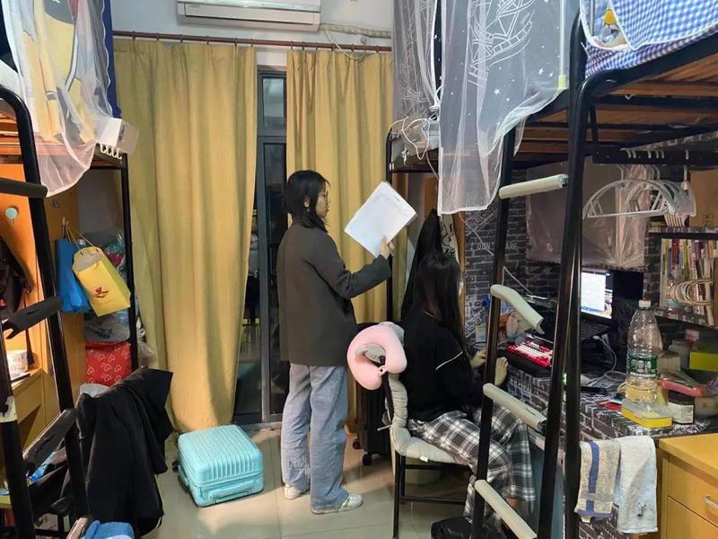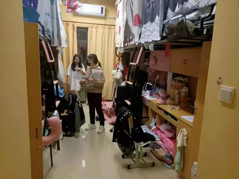 信息工程学院和智能制造学院学生宿舍整体干净卫生,物品摆放有序。老师们对各具特色的宿舍文化表示肯定,希望同学们保持整洁的居住环境,营造和谐的集体文化,提醒同学们关注用电安全,杜绝安全隐患,切忌在宿舍违规使用大功率电器,并鼓励此次检查中的优秀宿舍发挥带头表率作用。同时,老师们提醒学生宿舍通风透气,定期进行卫生消杀,做好疫情防控工作。