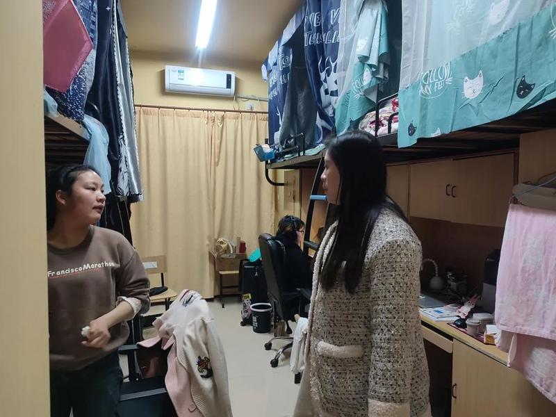 本次重点检查学生宿舍卫生、安全、饲养宠物及疫情防控情况。宿舍管理老师们带领辅导员参观学生宿舍,介绍了宿舍日常管理工作,并向辅导员们反馈了宿舍卫生状况,也对同学们的良好卫生生活习惯提出了表扬。她们的工作细致到位,辅导员们纷纷对宿舍管理老师们的辛勤付出表示了真挚感谢。