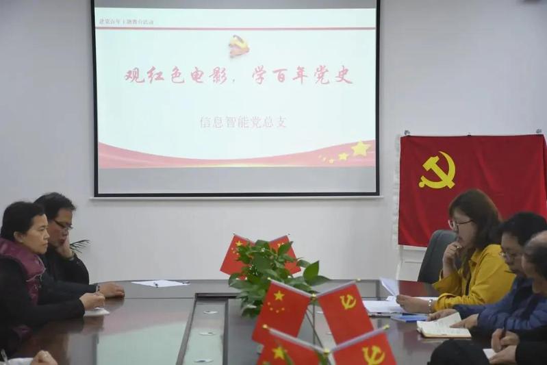为庆祝中国共产党成立100周年,大力弘扬爱国主义精神,认真学习贯彻习近平总书记在党史学习教育动员大会上的重要讲话精神,信息智能第一党支部于4月14日12:00在9-306开展了“看红色电影,忆峥嵘岁月”主题活动。本次会议由支部书记赵欣老师主持,学院全体教师参与其中。
