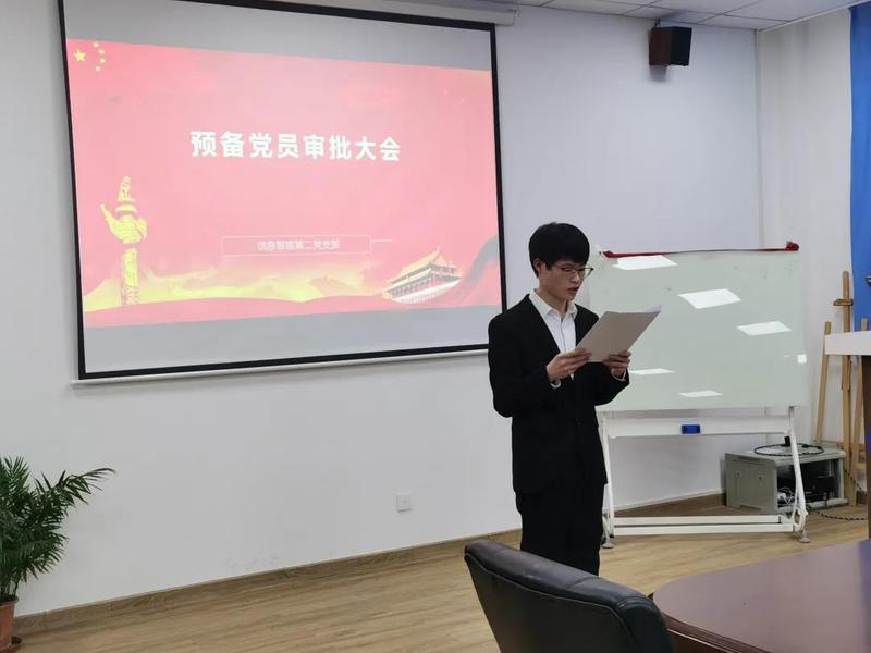 信息工程学院学生党支部研究决定,于4月15日18:30在9-306会议室召开2020年下半年预备党员转正答辩会。学院党总支书记刘群,学生支部书记赵淑静,答辩对象王林浩同学以及全体辅导员共同参加会议。