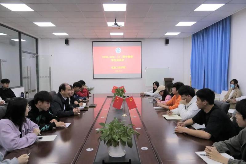 为更好了解学生的学习和生活,更好的倾听学生心声,学院在9-306室开展信息工程学院期中学生座谈会,力求解决学生在学习生活中的实际困难。参加本次座谈会人员的有信息工程学院院长陈祖爵老师,党总支书记刘群老师,学院全体辅导员及各班学生代表。
