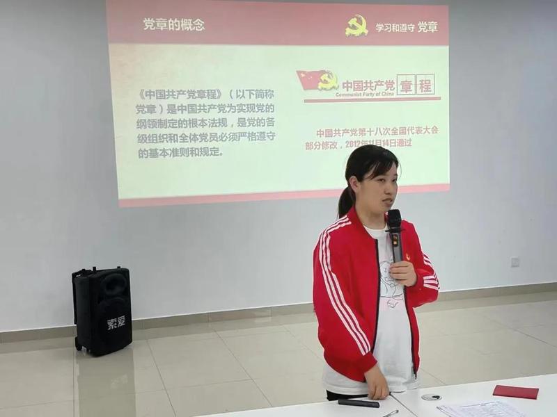 为迎接中国共产党100周年诞辰,深入学习党史,坚持以习近平新时代中国特色社会主义思想为指导,进一步提高入党积极分子的政治理论素养,锤炼忠诚干净担当的政治品格,培养全面发展的社会主义建设者和接班人。4月26日晚上,由第四分党校举办的第九期入党积极分子中级培训班第一讲顺利开讲。本次党课培训由信息智能党总支书记刘群老师主讲。主题为《明党章悟党性,明目标知前行》。