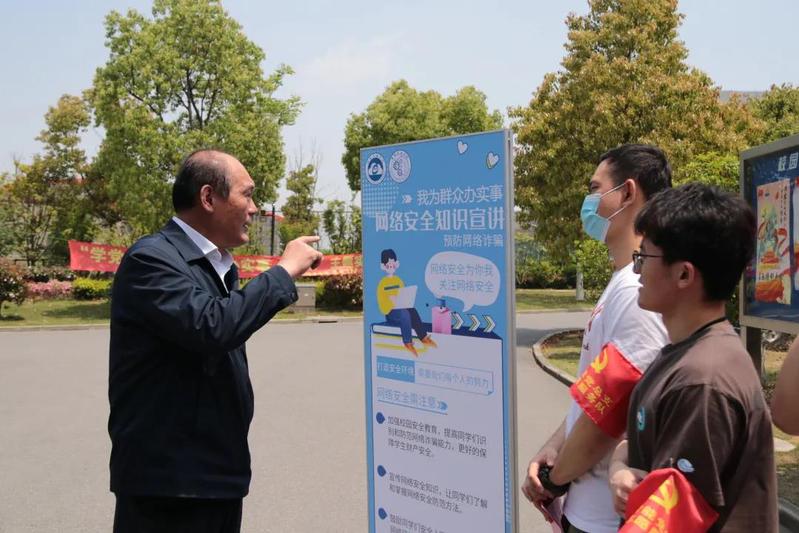 为深入贯彻习近平总书记关于网络强国的重要思想,进一步普及网络安全知识,推动党史学习教育走深走实,信息智能党总支初心志愿服务队于4月29日在食堂门口开展“学党史,践初心,办实事,解难题”主题网络安全知识普及活动,致力提升全校师生网络安全防范意识,信息智能党总支初心志愿服务队争当党团先锋,志愿为群众办实事。