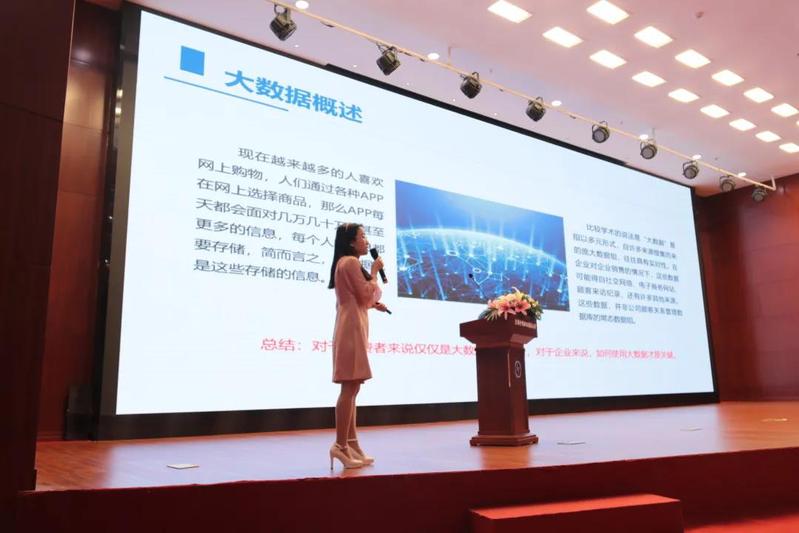 大数据技术专业主任杨文娟老师,向新生们概述了什么是大数据,大数据与当今时代密不可分,技能与环境具有重要意义,学好专业知识对未来的就业大有好处。杨文娟老师希望新生们能够珍惜大学生活,学好做人、做事、做学,具备勤奋好学、传承创新的能力。