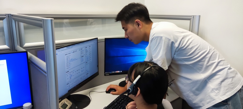 在携程公司工作人员的带领下,几位老师一行首先来到了携程客服中心。同学们在各自的岗位上忙碌,看着他们有条不紊地开始工作,老师们表示很是欣慰。通过工作人员的讲解了解到此次同学们工作内容主要是为携程的旅行客人提供电话、在线的咨询服务;为客人提供旅行订单的预订、咨询、修改等客户服务;收集客人意见和建议,和公司安排的其他工作内容。学生在经历了短期集中培训后现在已经进入了适应期,自己岗位上的工作已经能充分掌握了,大部分同学工作中已经能够得心应手。