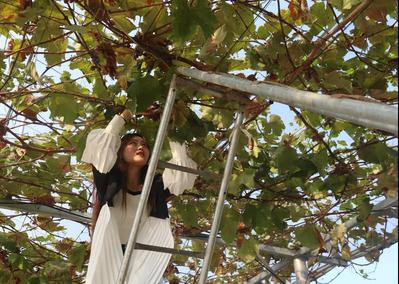 随后,她带领各位志愿者去往上海圣泉葡萄种植专业合作社基地里进行实践活动。志愿者们到达合作社大棚,参观葡萄的种植过程并加入其中,体验修剪葡萄枝、采摘葡萄等项目。