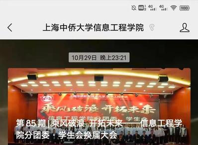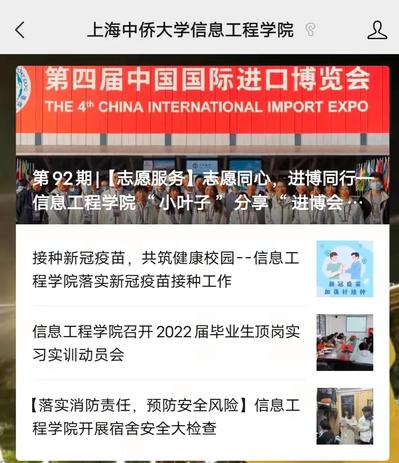“上海中侨职业技术大学信息工程学院”微信公众号成立于2021年,自成立以来,便不断努力,结合媒体融合趋势,不断创新,不断提升传播力、引导力、影响力,结合工作实际,以个性化方式传播正能量。一直以来,信息工程学院学生工作紧密围绕校院中心工作,不断引导,“上海中侨职业技术大学信息工程学院”微信公众号一直不忘初心,坚守使命,第一时间传播新闻热点,坚持为同学服务,积极配合校级宣传相关工作,高效完成每项任务。我们以“信息成就梦想,创新引领未来”的院训为目标,不断进步。