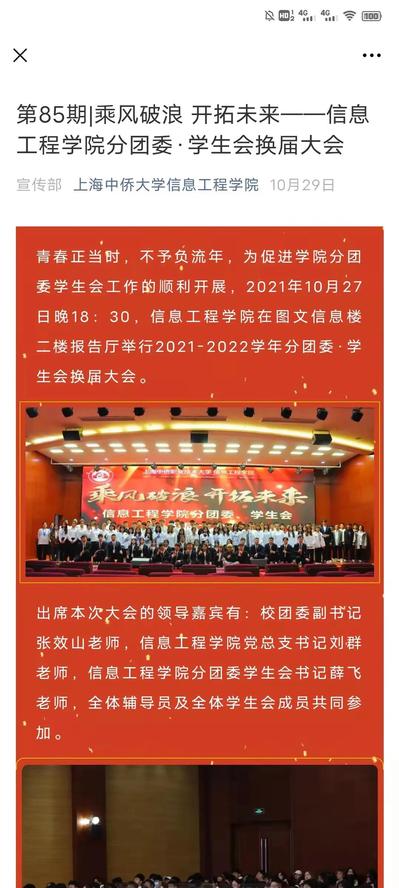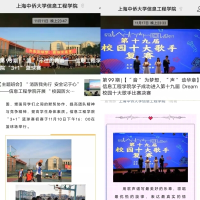 2021年11月11日,“第93期|“篮”不住的青春——信息工程学院“3+1”篮球赛”2021年11月17日“第99期|“音”为梦想,“声”动华章——信息工程学院学子成功进入第十九届Dream校园十大歌手比赛决赛”等。