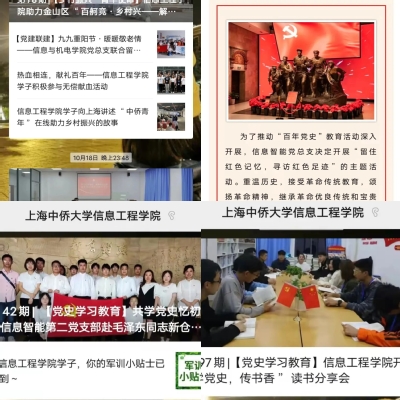 我们定期借助【党史学习教育】、【党校学习】、【党校】、【党建联建】等系列推送向学院师生进行党史学习教育。其中【我为群众办实事】、【百年红色印记寻访】特色版块反响热烈,并紧密结合学院学科优势,在学深细悟中常思,以学促做、知行合一,从百年党史中坚定信念、汲取智慧、凝聚力量,激发爱党之情、奋斗之志。
