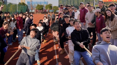 随之,信息工程学院的同学们也不甘示弱,第一场是信息工程学院与外国语学院进行比拼,他们纷纷抓住了绳子并做好准备,随着老师的一声哨响,每位学生都用尽全部的力气往后拉,一旁的同学们也在为他们加油鼓劲,在同学们的不断努力下,第一场比赛赢得了胜利,队员们开始欢呼。