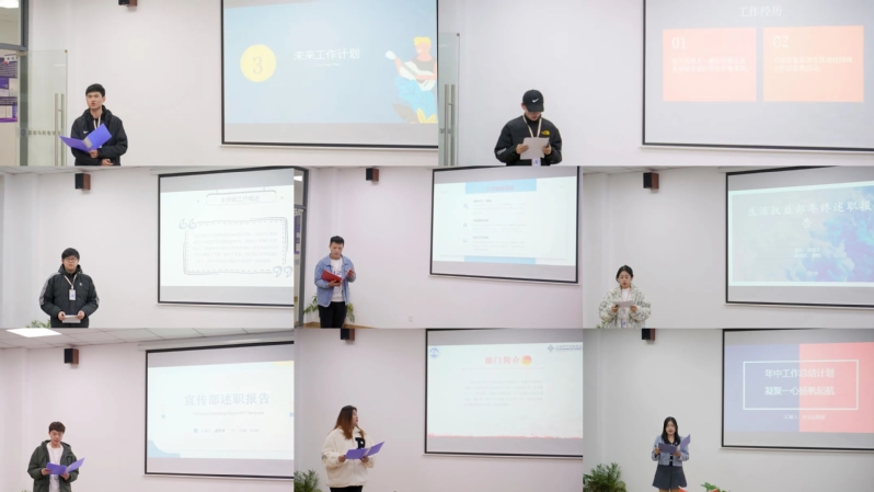紧接着,由各部门负责人代表对本学期部门工作进行总结,并对下学期的工作进行规划。随后,信息工程学院分团委、学生会副书记邵灵灵对信息工程学院到梦空间工作进行汇报,分别从到梦空间部门介绍、学生到梦空间注册激活、到梦空间活动发布三方面进行工作总结,并对接下来的工作进行展望。信息工程学院分团委、学生会副书记卫红阳从工作内容回顾、工作成绩展示、工作计划总结三方面进行工作述职并表示将继续努力,将学院工作高效率、高质量完成。