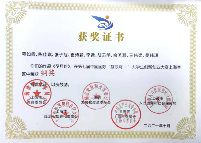 经过校内选拔,我院6个团队项目参加上海市复赛。最终经过市级评审,获得1银3铜2优胜奖。
