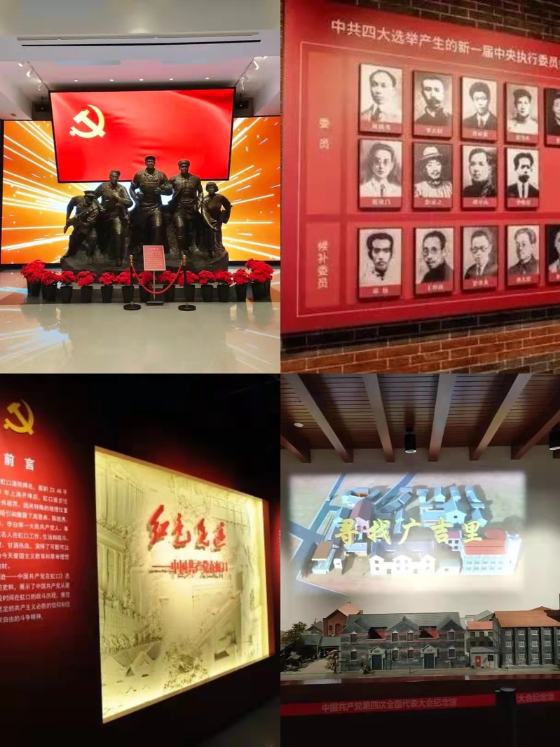 布展提升后的中共四大纪念馆,基本展陈面积较之前扩大一倍,完整再现了1925年中共四大召开的生动场景,将场景和展览内容有机融合,观众能够更加清楚地了解四大召开的全过程,从中共四大筹备到召开以及大会的历史贡献,展陈逻辑线路更加清楚。石库门元素贯穿整个展线,为观众营造沉浸式观展体验。