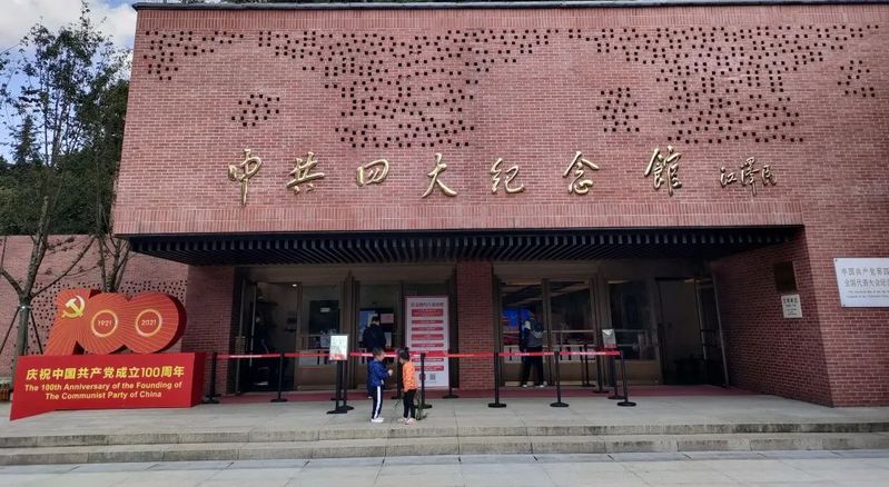 中共“四大”纪念馆位于上海市虹口区四川北路绿地公园内,建筑面积为3180平方米,展览面积约1500平方米,由序厅、主展厅影视厅和副展厅等组成。