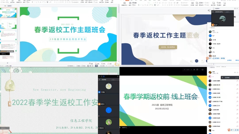 会后,各辅导员利用开学前夕,召开以“疫情防控,人人有责”为主题的线上主题班会。由各辅导员主持,对本班学生宣传疫情防控知识并落实疫情防控措施,以及返校安排等内容。