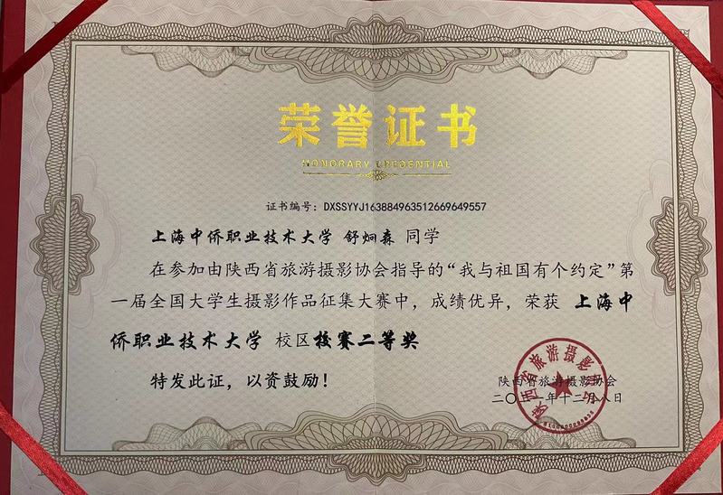 【技能大赛】我校学生在2021年由陕西旅游摄影协会举办的我与祖国有个约定|全国大学生摄影作品征集大赛上荣获二等奖
