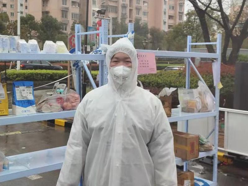第二天一早起来,接收到任务后,我们就又穿着防护服去给封闭的几栋楼送菜和外卖。每次看着他们拿到食材和美食的笑容,听着居民们表达的每一声的感谢,都成为了我每天继续努力的鼓舞。晚上,我们也会在封闭楼栋值守,防止居民出门。夜晚值守的我们,受春寒天气影响,手脚逐渐降温冰凉。镇武装部在得知我们的情况后,连夜派人过来送大衣,让我们抵御了寒风的侵袭。小区的群众们也积极配合我们的工作,在工作上给予了我们莫大的支持与鼓励。互帮互助的我们,身暖,心更暖。
