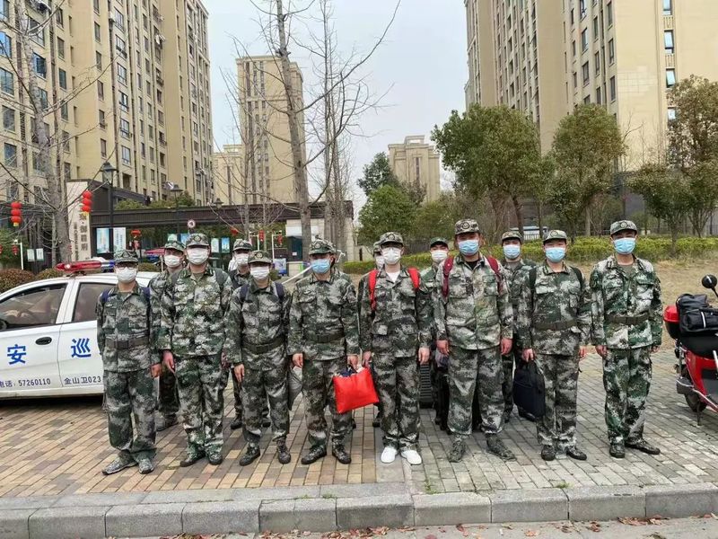 2022年3月14日,我们组织召集在了一起前往支援地。在前往目的地的路上,武装部部长首先向我们说明了正荣·御首府这个小区的基本情况。抵达目的地后,部长再三强调,进去后要保护好自己,因为服务时长未定,所以一定要做好不怕苦不怕累的心理准备。我们怀揣着激动又紧张的心情,在门口合了影留念,穿着防护服进了小区。