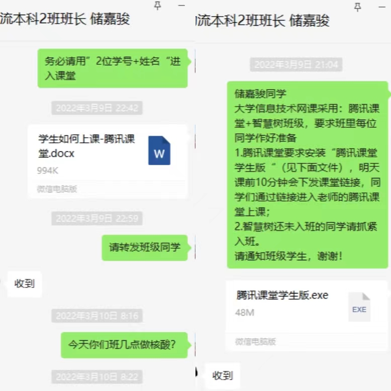 因疫情防控需要,学校发布通知:3月10日起开展线上教学。结合之前的一点网课经验,决定此次线上教学采用腾讯课堂+智慧树班级教学,做好各项准备工作后,立即和班长取得联系,沟通到深夜。