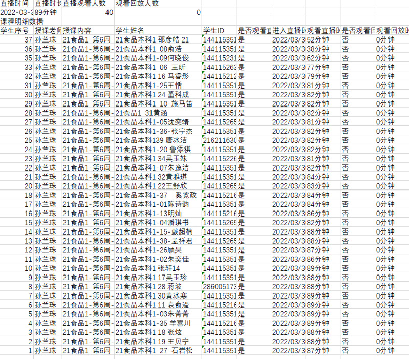 每节网课前10分钟发课堂链接给同学,提醒同学们快快进课堂,网课点名采用腾讯课堂导出的考勤表+智慧树课堂签到结合。出勤率接近100%。